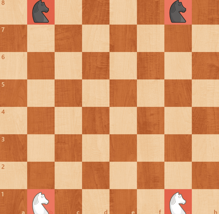 The Knight in shining armor is the trickiest chess piece around! He gallops across the kingdom atop his noble steed, who likes to show off by leaping over hedges and small streams. The Knight always changes color when he hops: rotating from a light square to a dark, or from a dark square to a light.