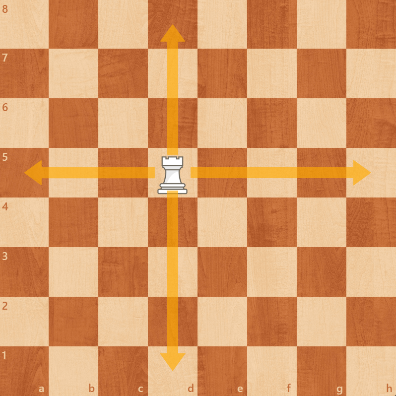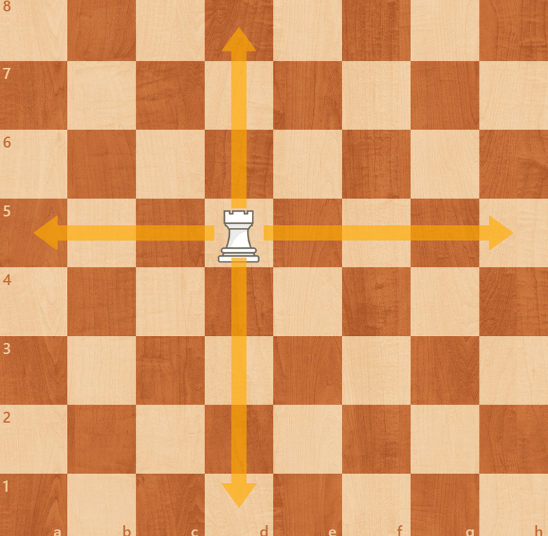 The rook moves in straight lines across rows and columns. It's the strongest in open spaces.